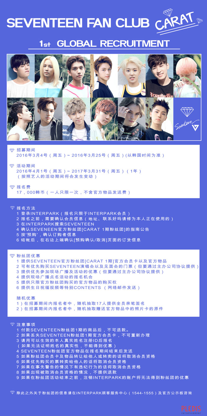 SEVENTEEN OFFICIAL FAN CLUB ‘CARAT’ 1st Recruitment - Global | NOL World