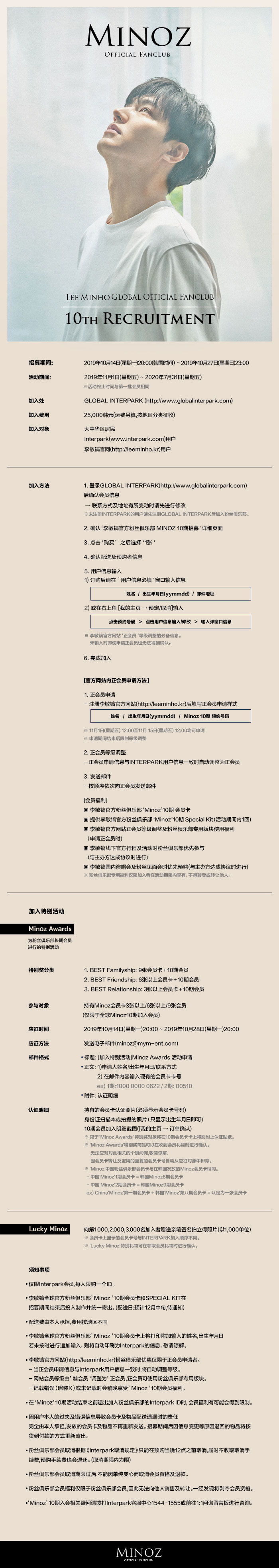 开放李敏镐全球官方粉丝俱乐部‘Minoz’ 10期大中华区招募