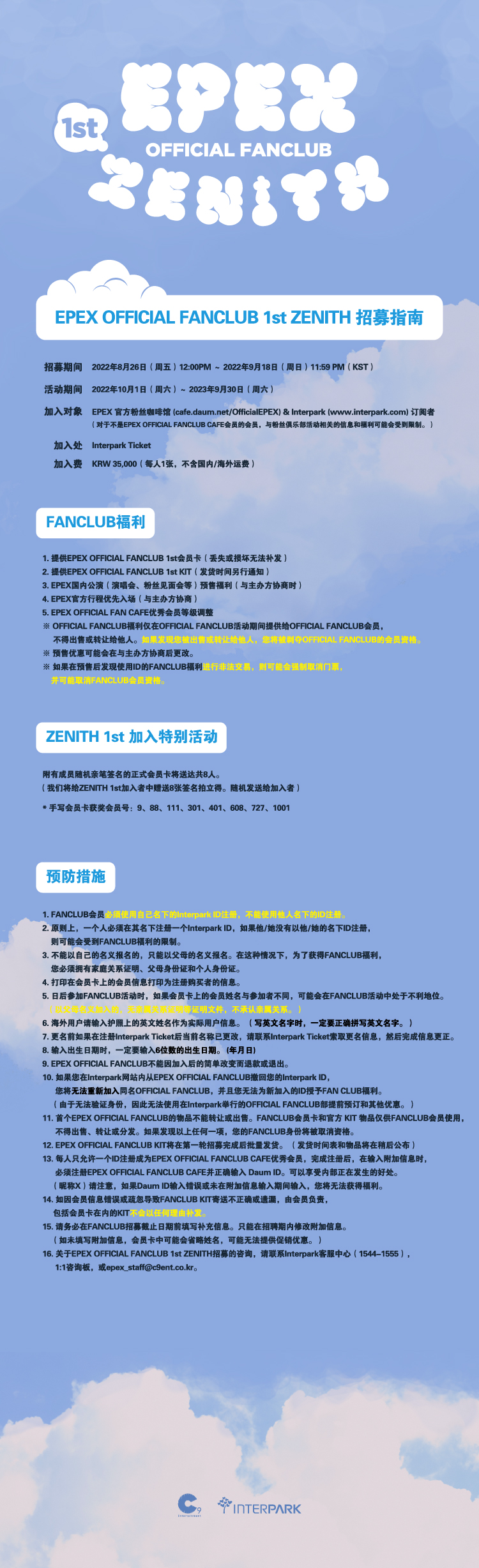 16. 关于EPEX OFFICIAL FANCLUB 1st ZENITH招募的咨询,请联系Interpark客服中心(1544-1555),1:1咨询板,或epex_staff@c9ent.co.kr。