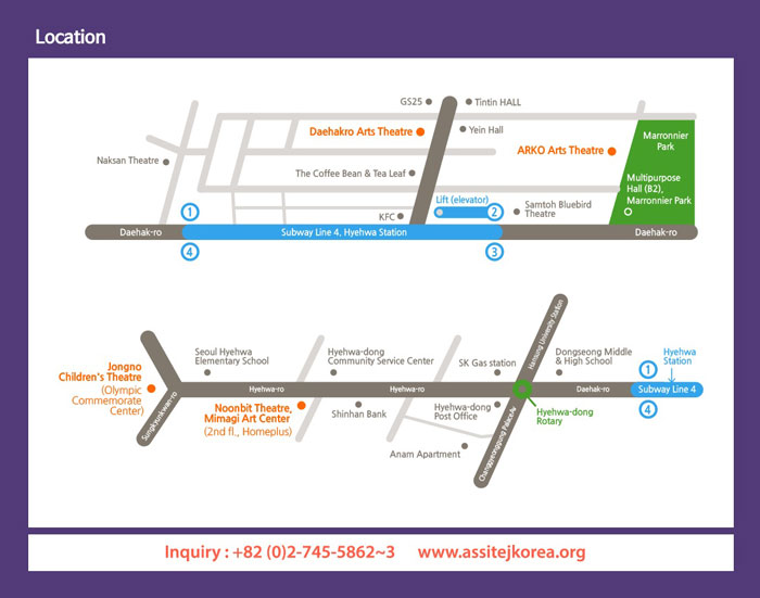 - 대학로예술극장서울특별시 종로구 대학로10길 17 (동숭동 1-67)