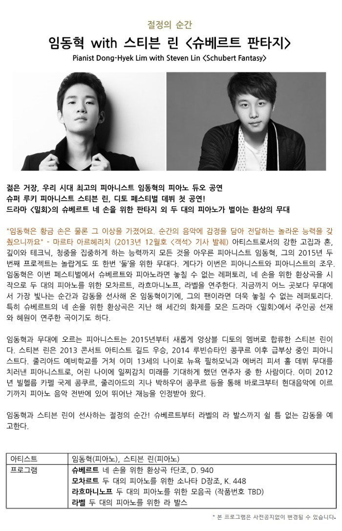 2015 DITTO Festival - Pianist Dong-Hyek Lim with Steven Lin〈Schubert Fantasy〉