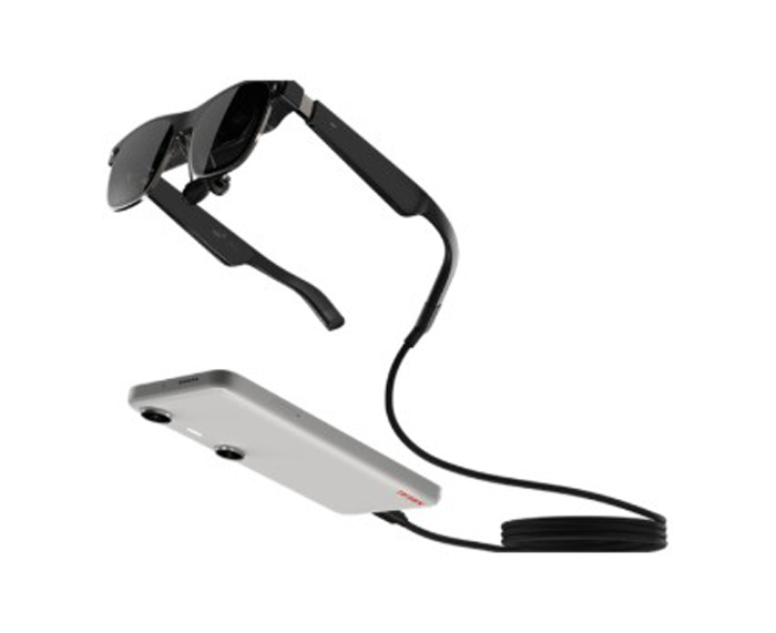 * Smart glasses, mobile controller, connection cable, glasses stand, instruction manual, disinfectant wipes