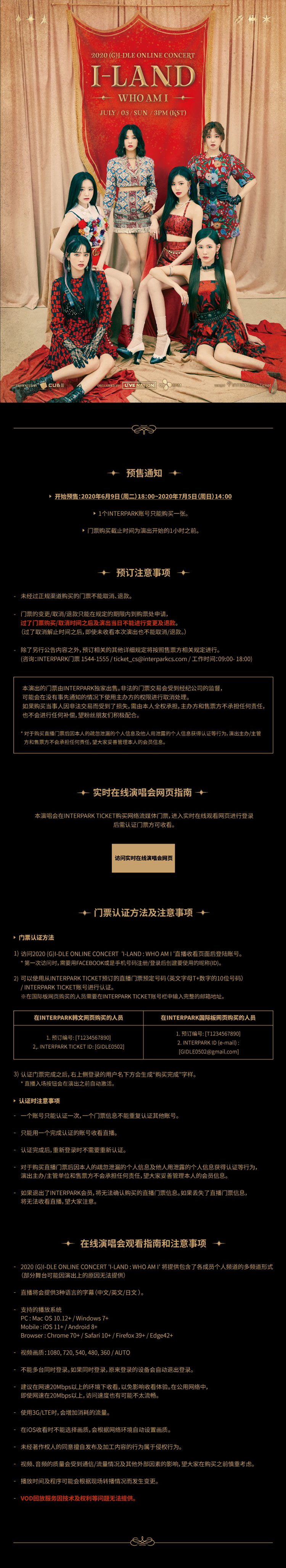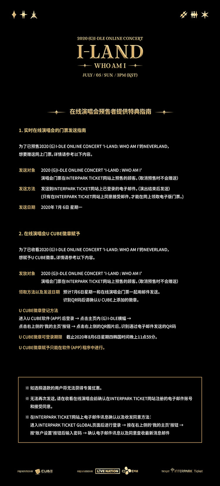 主办商CJ ENM有关2020 (G)I-DLE ONLINE CONCERT ‘I-LAND : WHO AM I’演唱会事宜的通知。