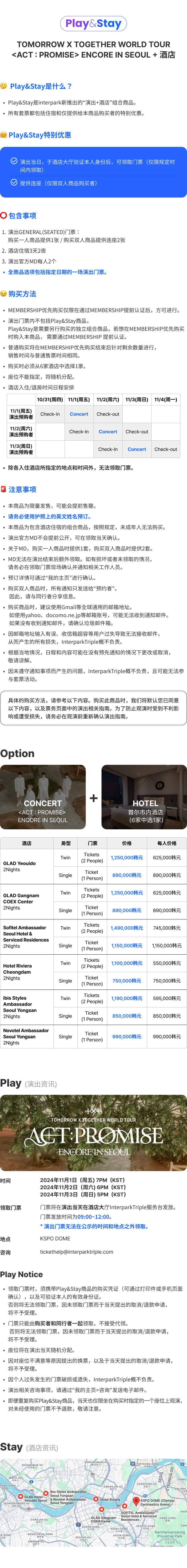 [Play&Stay]TOMORROW X TOGETHER WORLD TOUR 〈ACT : PROMISE〉 ENCORE IN SEOUL+ Hotels