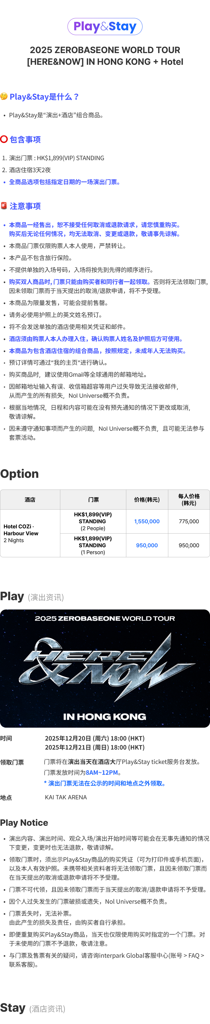 [Play&Stay]2025 ZEROBASEONE WORLD TOUR [HERE&NOW] IN HONG KONG + Hotel