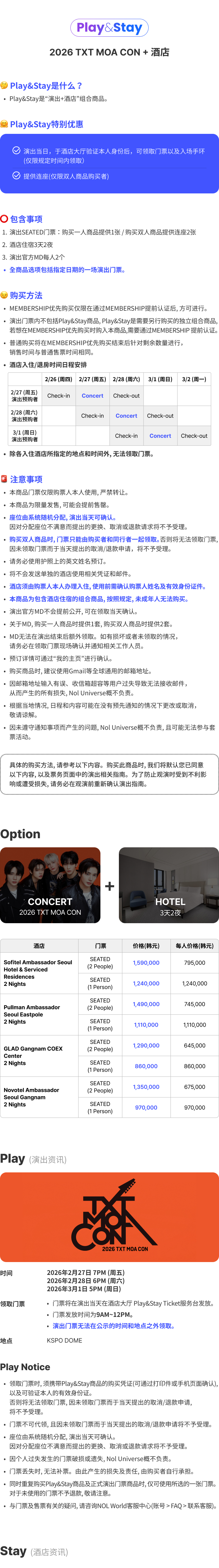 [Play&Stay]2026 TXT MOA CON+Hotels