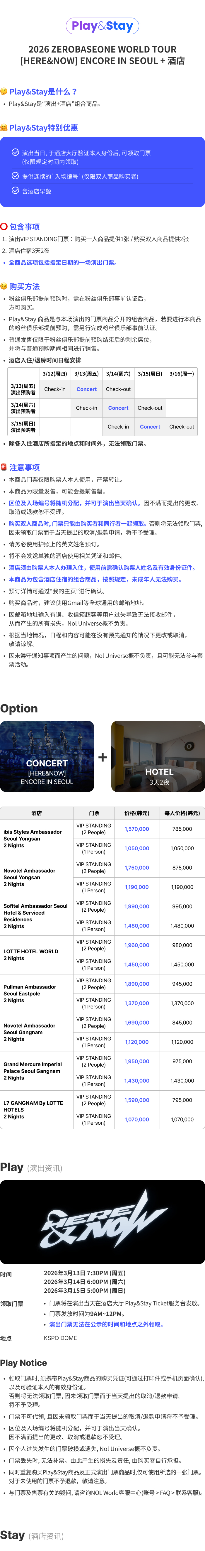 [Play&Stay]2026 ZEROBASEONE WORLD TOUR [HERE&NOW] ENCORE IN SEOUL+Hotels