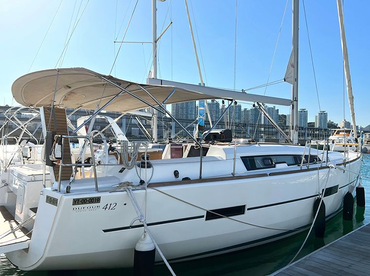 是法国游艇制造商Dufour生产的Grand Large412型号。41英尺的准大型减价游艇展现稳定的乘船感。