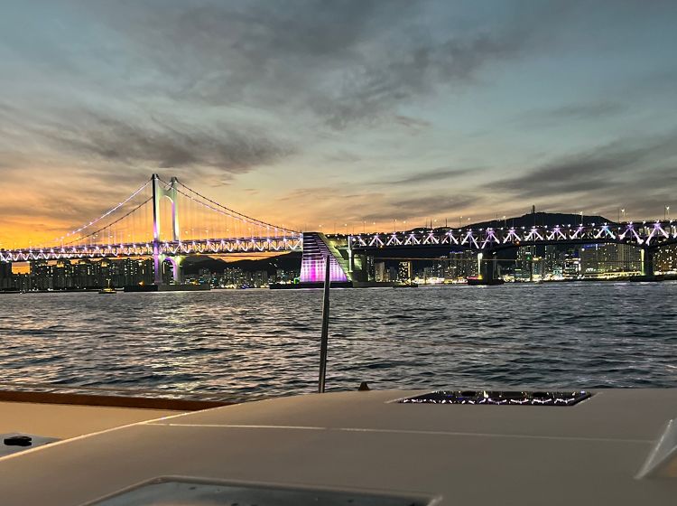 游览釜山的热门景点海云台海洋城市、广安大桥、广安里。(预约1小时为准) 和家人、朋友们在船上享受愉快的时光吧。