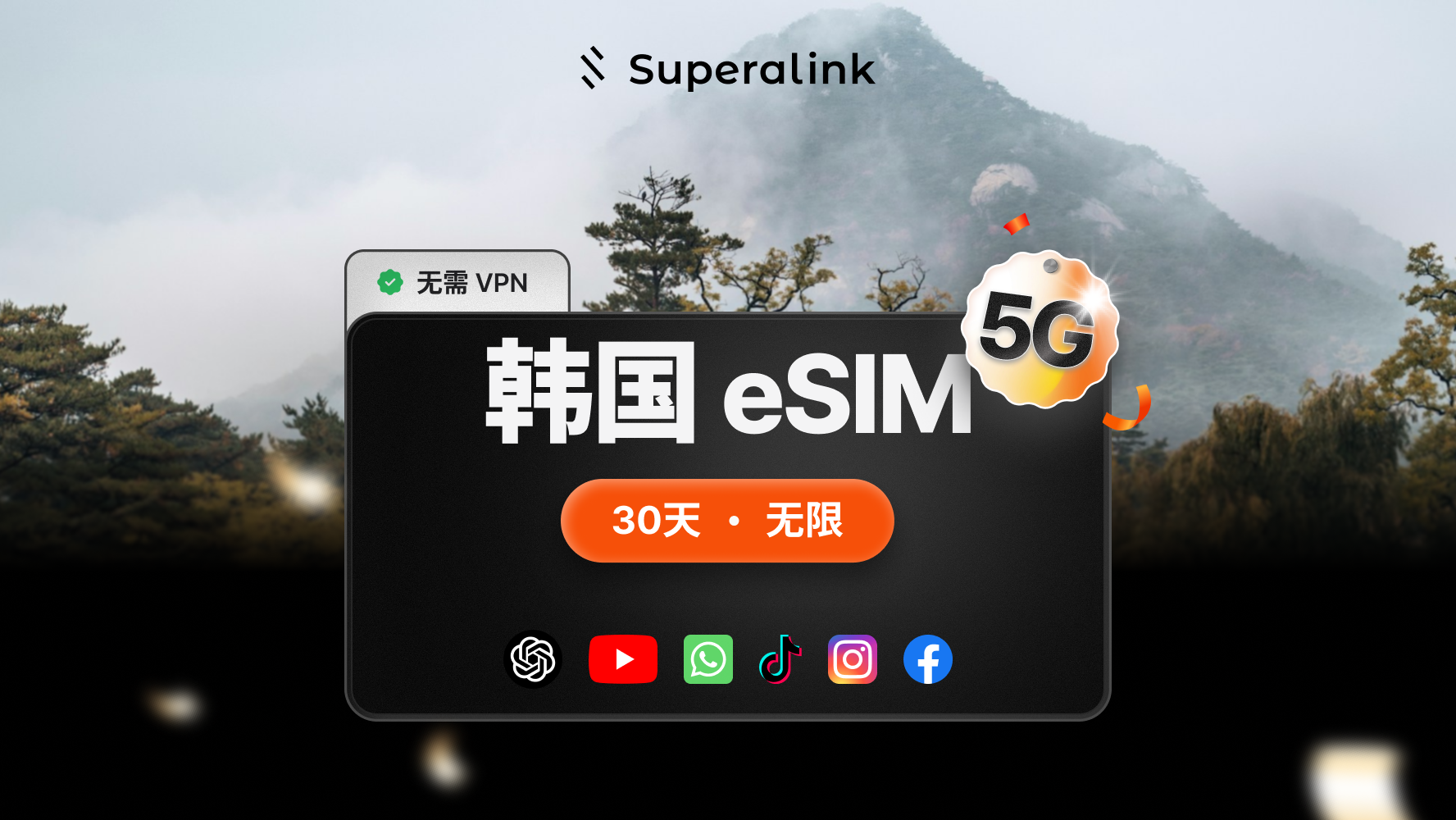 【韩国】无限 5G eSIM(支持 ChatGPT 及所有社交媒体应用)