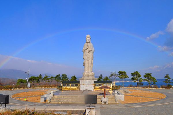 新羅時代から観世音菩薩が留まる観音聖地として有名な寺院「洛山寺(ナクサンサ)」を観光します。