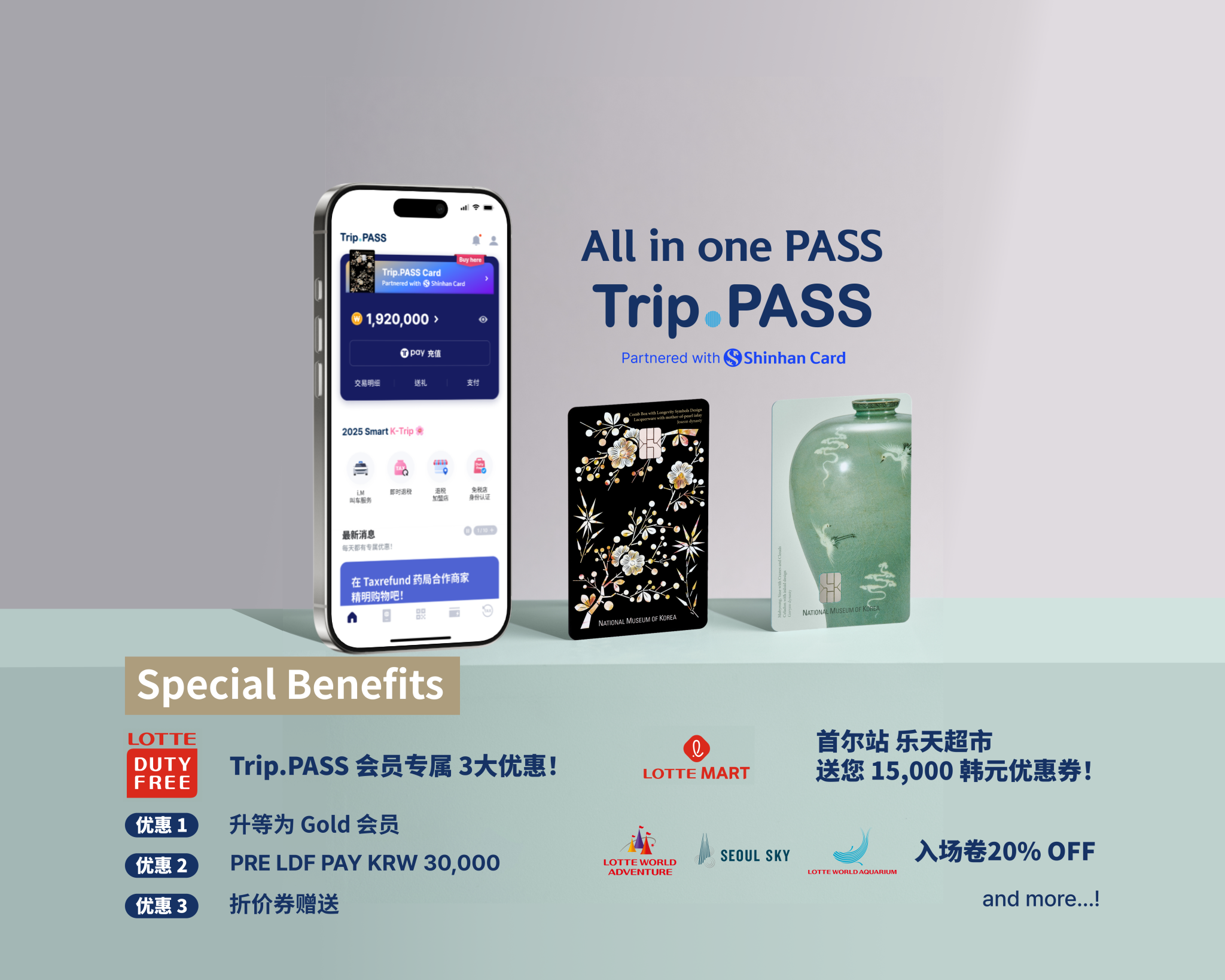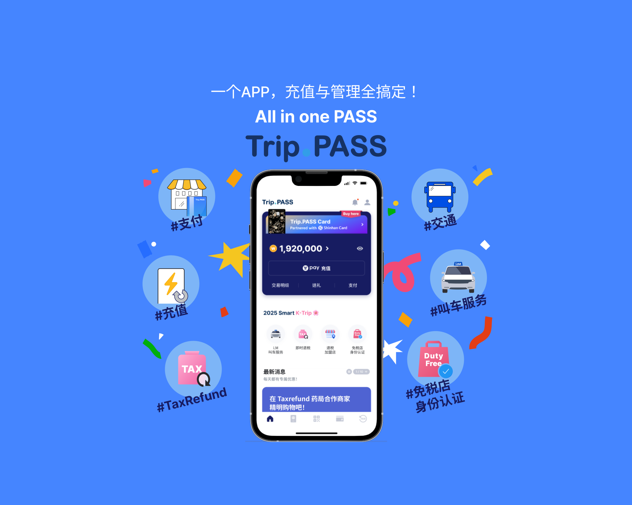 Trip.PASS 预付 All in One 通行卡,集交通、景点优惠与便捷支付于一体,为韩国旅行提供无忧的一站式体验。