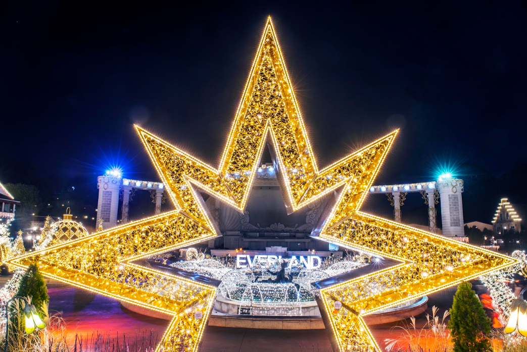- 韩国最大级别的主题乐园,春夏秋冬都有不同的季节主题与节日装饰。
