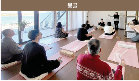 一边眺望釜山日光海岸的湛蓝海景,一边体验放松身心的瑜伽。