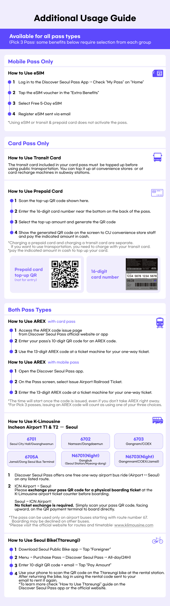 Free use of AREX, K Limousine, Seoul Bike, and Seoul City Tour Bus (Red, Yellow Bus)