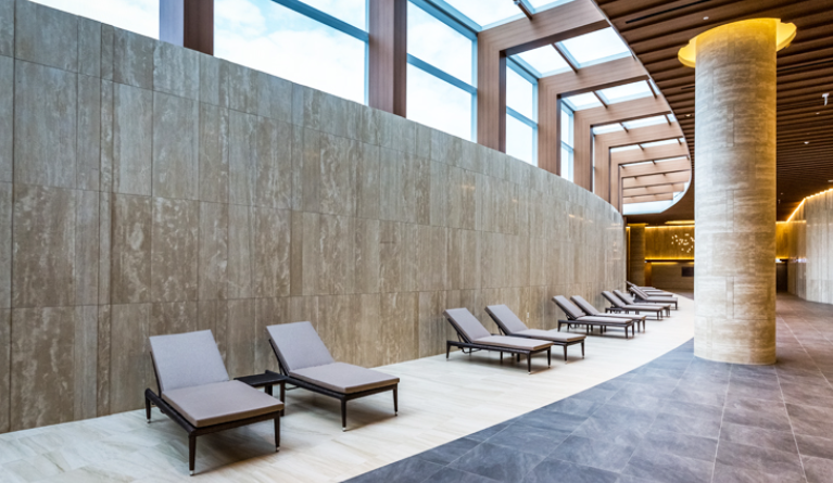 靠近各种汗蒸空间, 为汗蒸SPA使用增添活力的休息空间。