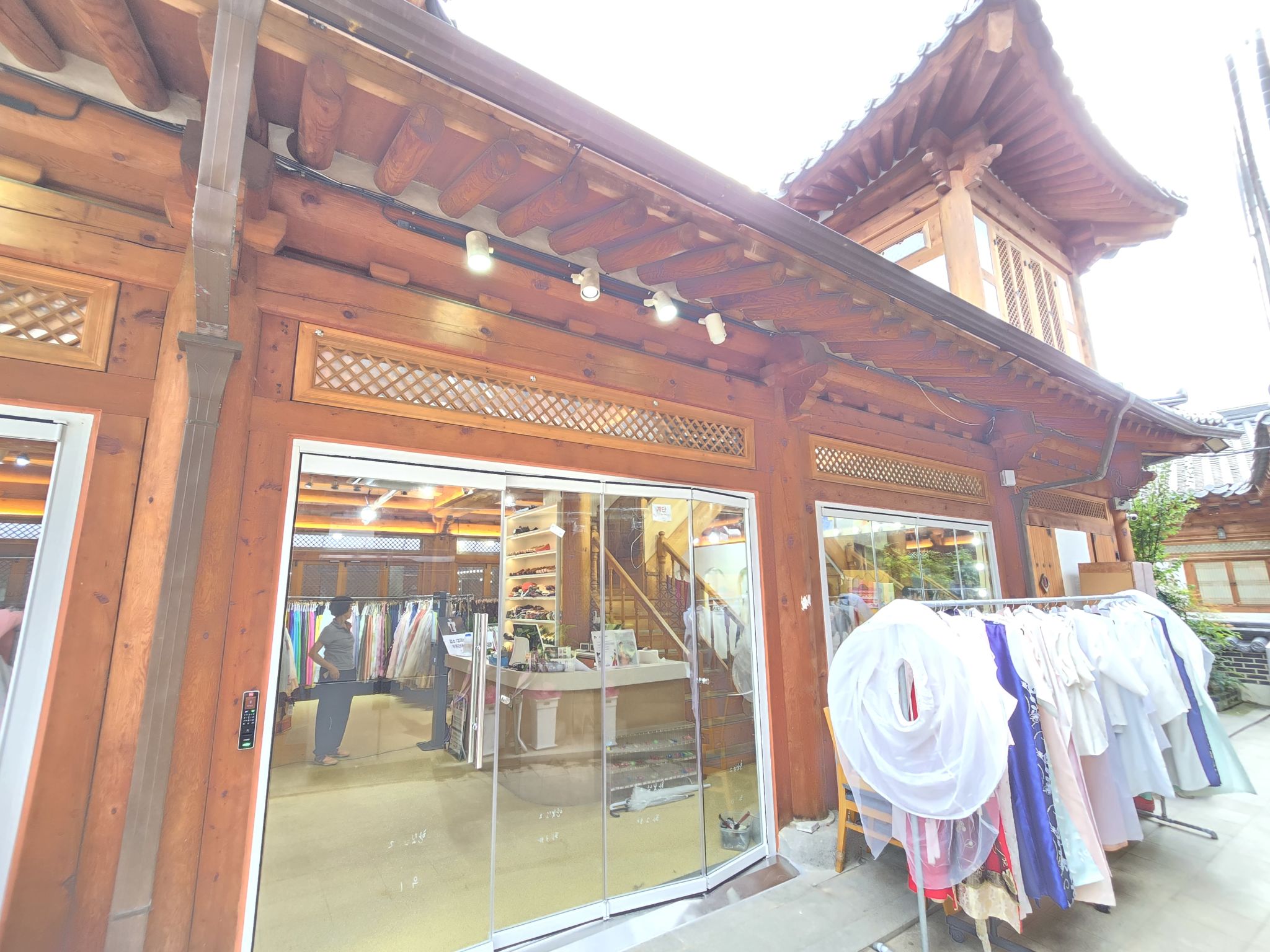 - 在装修成韩屋的卖场前拍照也很漂亮。
