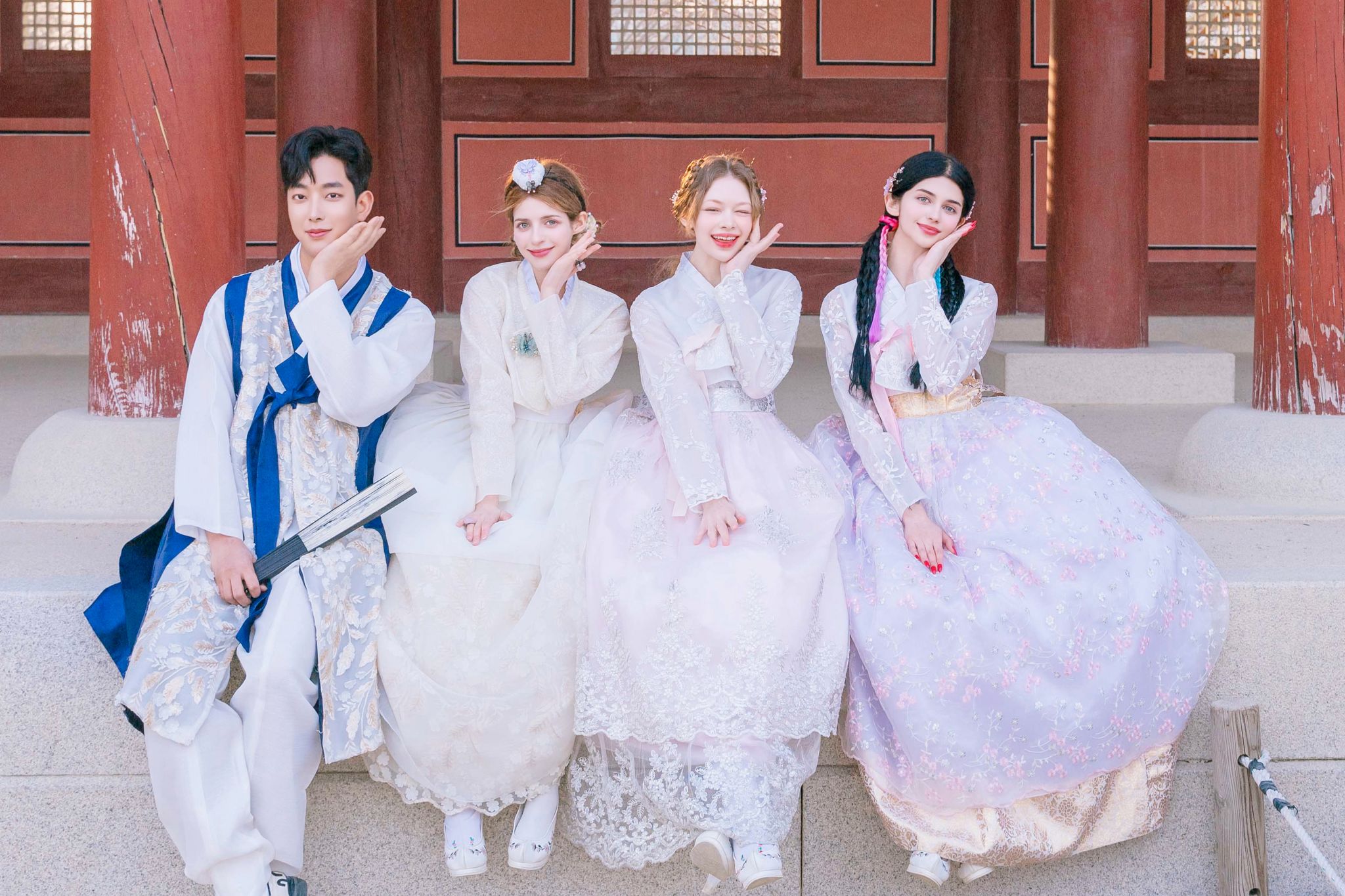 韓服男はソウル旅行で外せない旅行先である景福宮で最も有名な韓服体験店です。 テーマ韓服、伝統韓服、ウェディング韓服、キャラクター韓服、生活韓服、子供用韓服など様々な種類の韓服が用意されているので、お好きな韓服をレンタルしてみてください。 ベーシック韓服は韓国で最も普遍的なデザインです。 最もシンプルで美しい色味が特徴です。 韓国では現在も祝日や、重要な日に着る基本形式の韓服です。 テーマ韓服は一番人気の韓服デザインです。 トレンドに合わせたフュージョン風にデザインされた韓服です。 華やかな色とレースでドレスのようなデザインです。 そのため、着た時の写真がきれいに演出される韓服です。 テーマ韓服は外国人が一番好きなオプションです。 テーマ韓服には、フュージョンデザインとKドラマに登場するキャラクター韓服も含まれます。 王様、王妃、武士などのキャラクターの韓服もあります。 アクセサリーを一緒に着用すると、よりリアルに韓服を体験することができます。 プレミアム韓服は韓服体験で最もハイエンドな韓服のオプションです。 キャラクター韓服の中で、プレミアムバージョンの王様、王妃、士人などの韓服が含まれます。 また、ウェディング韓服、レイヤードスカート、カンカンなどレイヤード韓服のデザインもプレミアムラインで選択できます。 一番写真撮影に適しており、美しい形です。 プレミアム韓服をご選択の場合、ヘアスタイリングアクセサリー、バッグ、ノリゲ、靴などの基本的なアクセサリーは無料で提供いたします。 (韓服やヘアスタイルのデザインにより、現地で追加料金が発生する場合があります。) 韓服男にお越しいただければ、様々なサービスをご自由にお選びいただけます。 ヘアは無料から提供しており、追加オプションはお客様が選択することができます。 また、韓国旅行ではなかなか見られない伝統アクセサリーのお土産も販売しています。 韓服男では、お客様の便宜のために上記のようなサービスを提供しています。 無料荷物預かり、無料ロッカーレンタル、無料ヘアーアクセサリー(ヘアバンド)、 アンダースカートレンタルサービスなど 韓服を体験しながら韓服男サービスを便利にご利用ください。 ▶利用場所 ソウル特別市鍾路区社稷路133-5