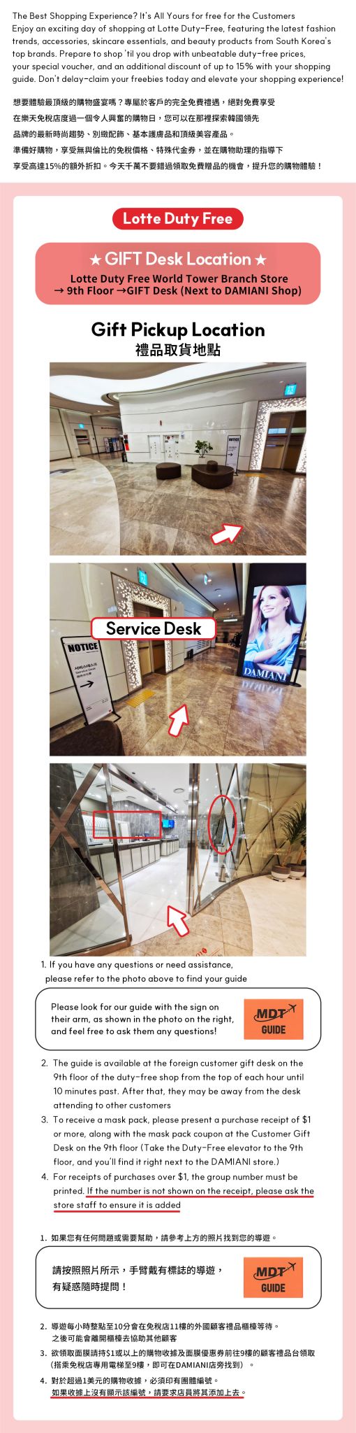 - ※ Lotte Duty Free Discount Coupons ※ : Available to use at the Lotte Duty Free location of 'Myeongdong Main Store' and 'World Tower Store' in Jamsil.