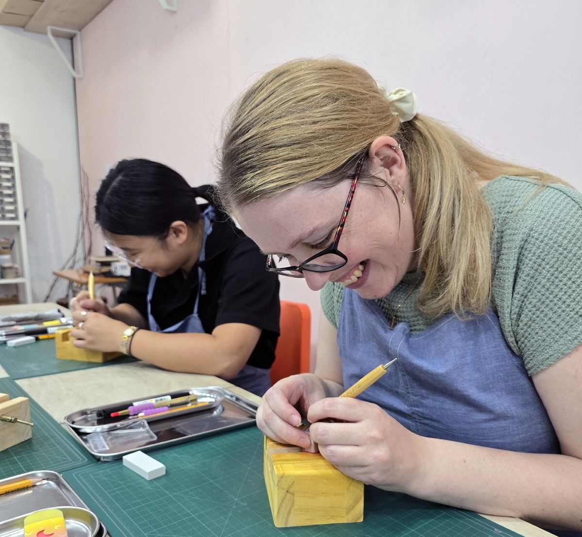 在首尔乙支路亲手制作属于自己的韩文石头印章。体验韩国传统工艺,设计并雕刻独一无二的专属印章。