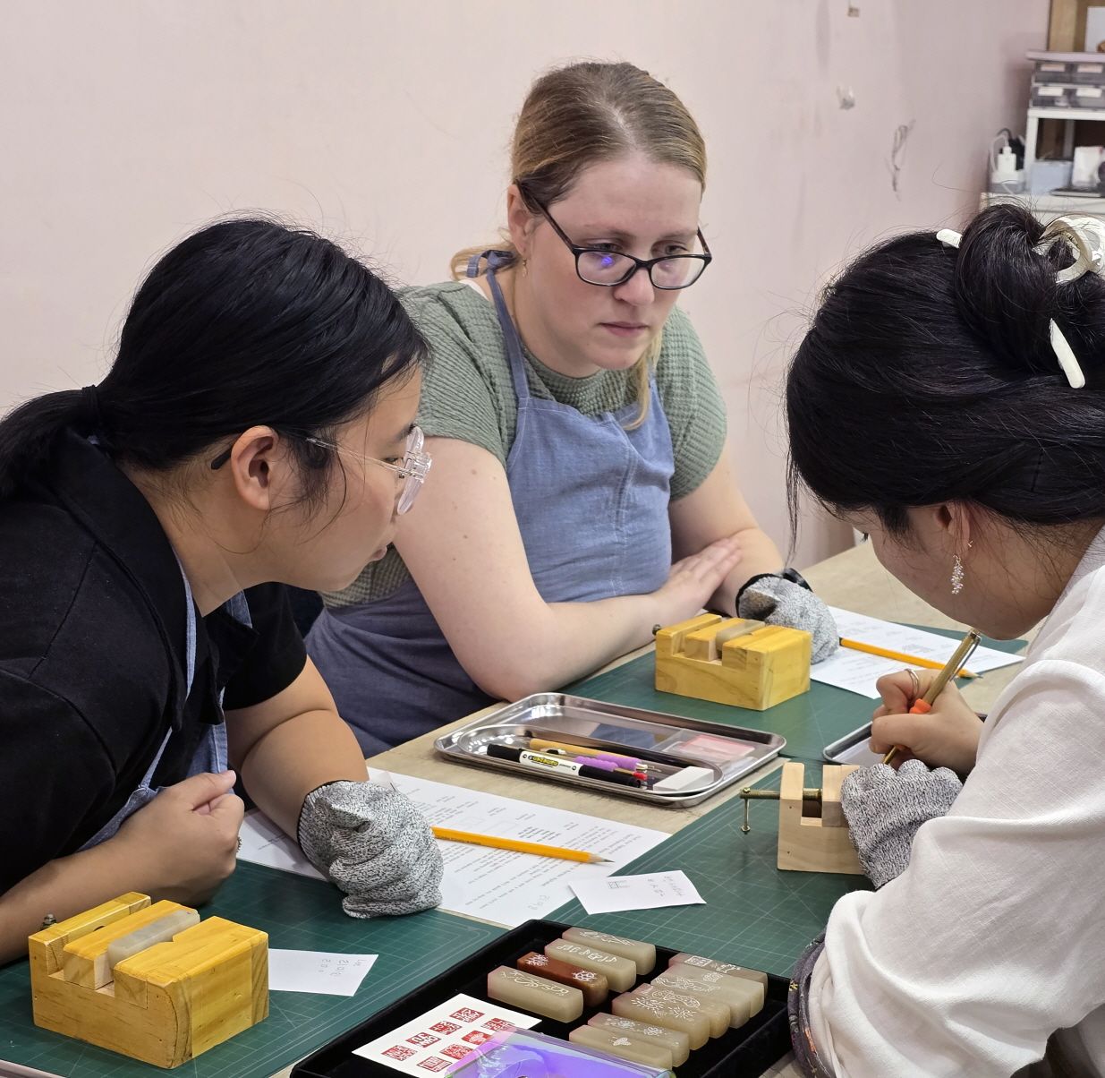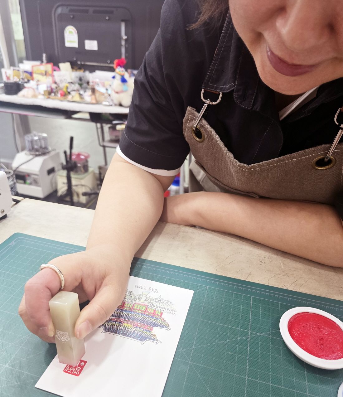 在该体验将使用Engraving技术在柔软的石头上刻字制作手工印章。